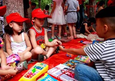 當(dāng)天上午不到九點鐘,活動現(xiàn)場早已布置就緒,90多個取得“攤主”資格的孩子們精心布置著自己的攤位,把自己心愛的物品整齊有序地排列,小攤位上各種書籍、玩具、工藝品、文具等物品琳瑯滿目。九點鐘活動正式開始,孩子們在各個攤位前流連,仔細(xì)挑選喜愛的物品,用自己帶來的東西“攤主”置換。“我很喜歡你的小手槍,我能拿這本《格林童話》的書換嗎?”“我用一支圓珠筆換到了三個筆記本呢!”……有的孩子為了“招攬生意”大聲吆喝著,還有的彼此自我介紹成了新朋友,忙的不亦樂乎,現(xiàn)場空前熱烈。許多家長表示,這樣的活動非常有意義,不僅讓孩子換得了新的玩具,還培養(yǎng)了勤儉節(jié)約的良好習(xí)慣,一舉兩得。