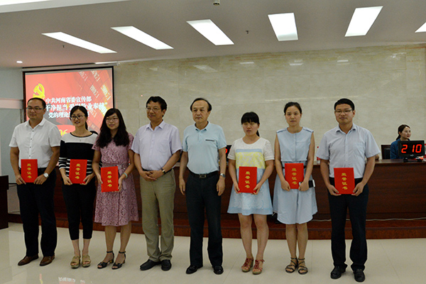 通過(guò)舉辦黨的理論知識(shí)競(jìng)賽,達(dá)到了以賽帶學(xué)、以學(xué)促用的目的,充分調(diào)動(dòng)了部機(jī)關(guān)黨員干部學(xué)習(xí)的自覺(jué)性和積極性,把枯燥的理論知識(shí)和活潑的比賽形式結(jié)合起來(lái),使大家在積極參與的過(guò)程中不斷鞏固學(xué)習(xí)成果。根據(jù)今天競(jìng)賽情況,將組建省委宣傳部代表隊(duì),參加省直機(jī)關(guān)“喜迎十九大 機(jī)關(guān)做表率”黨的理論知識(shí)競(jìng)賽。